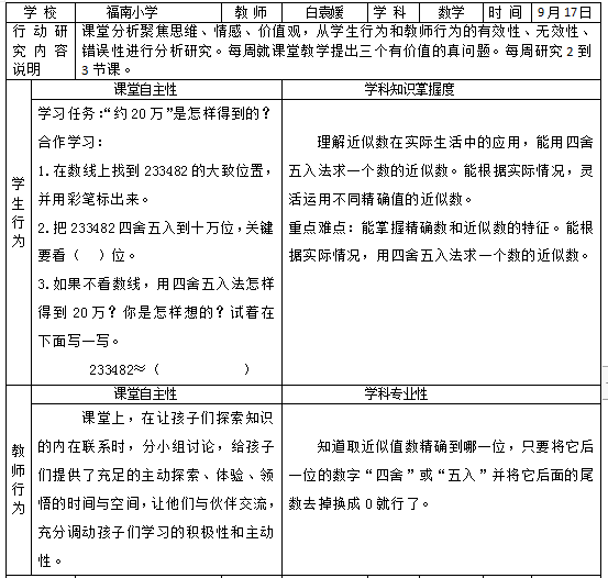 自主教育是要充分发挥学生学习的主体地位,提高学习的参与度,发展学生自主学习的能力。学生要成为学习的主人,合作交流、互助释疑是教学的基本形式,所以合作型的学习组织是推进自主学习的基础。教师要充分发挥学习小组的作用,利用小组学习解决一般性的问题,并提炼出有价值的数学问题。